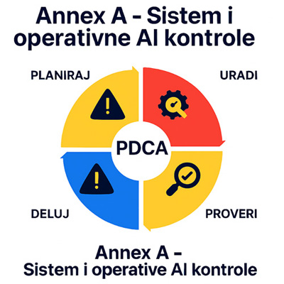 Aneks A standarda ISO/IEC 42001 sadrži set specifičnih kontrola namenjenih organizacijama koje razvijaju, koriste ili upravljaju AI sistemima. Za razliku od klasičnih menadžment sistema, ove kontrole se fokusiraju na rizike, transparentnost, upravljanje podacima, validaciju modela, etičke principe i specifičnosti AI životnog ciklusa.